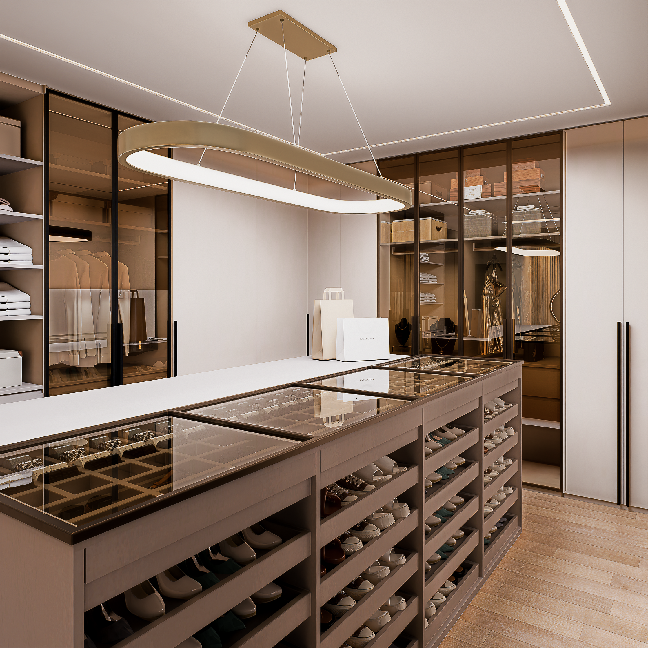 Com escopo completo: social integrado, estar íntimo, cozinha, gourmet que pode ou não ser integrado com a cozinha, escritório, academia, despensa, área de serviço, dce, , depósitos, sauna, duas suítes hóspedes, suíte filha com closet e suíte master com closet, o maior desafio foi a setorização. A partir do limitador de ocupação do terreno, com um afastamento frontal obrigatório de 15m da avenida da orla, e de sua posição de esquina, começamos definindo os acessos de veículos e de pedestre, para assim seguir com os cômodos sociais, de serviço e por fim, privativos.