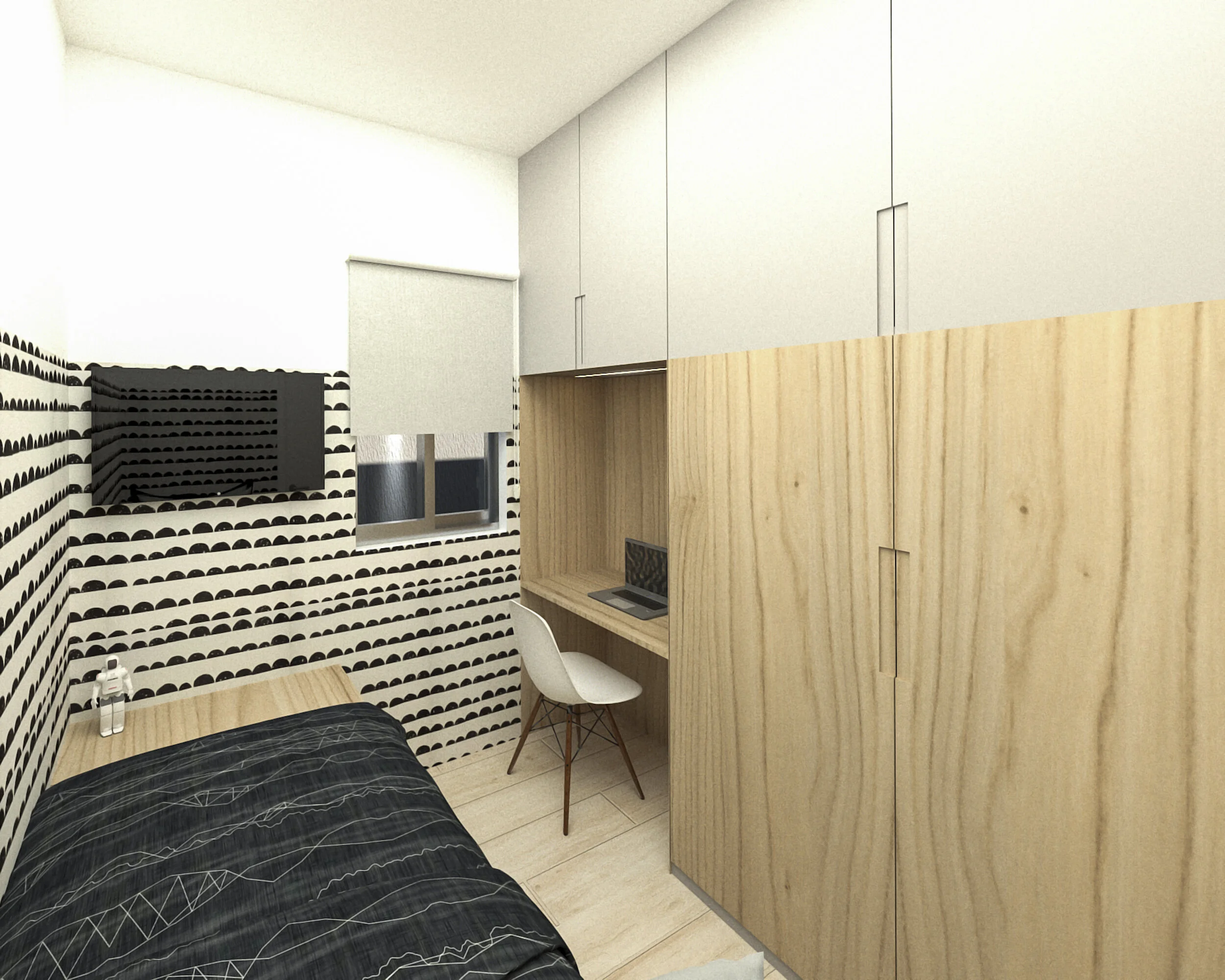 Reforma de casa térrea de dois quartos, em que foi pedido para transformar em três quartos, mantendo a casa em um pavimento. Com um orçamento limitado, foi proposto um layout mais otimizado, com poucas intervenções estruturais, para ter o mínimo de demolições e reconstruções e, com isso, uma obra mais rápida e barata.
